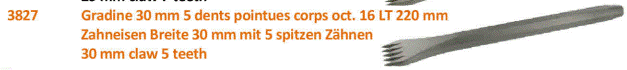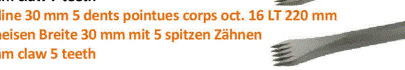 GUILLET 5 Tooth Claw Chisel Forged Steel For Soft Stone 30mm Wide 16mm Diameter 220mm Long 3827