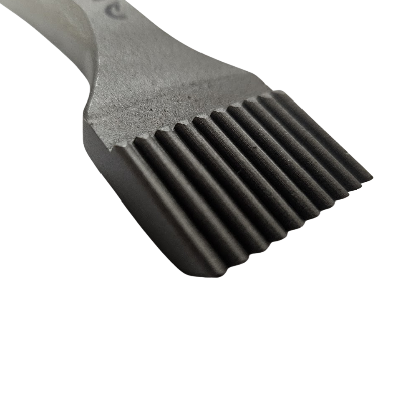 • Hardened steel chisel with ribbed cutting edge